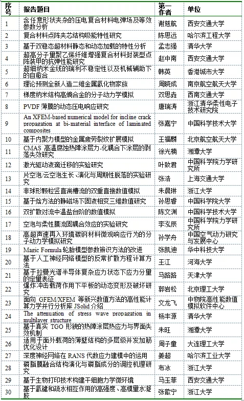 为加强学术交流、鼓励科学研究、促进力学学科青年人才成长,中国力学学会在中国力学大会2019召开期间组织开展“中国力学大会2019优秀墙报奖”评奖活动。评选工作遵循“科学公正、注重创新、严格筛选、宁缺毋滥”的原则进行。经专题推荐、专业委员会现场评审等环节,共评选出优秀墙报30篇,并在大会现场颁奖。