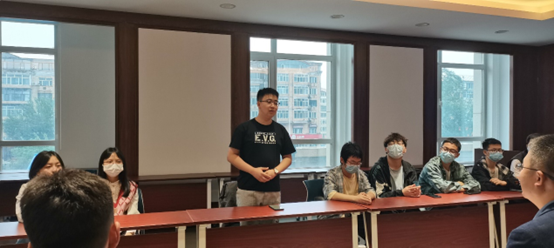 班长王孟韩从班级基本情况、班级建设情况、所获荣誉情况、学生组织参与情况等方面作简单介绍,同学们依次作自我介绍,陈文礼亲切询问了同学们的学习生活情况。