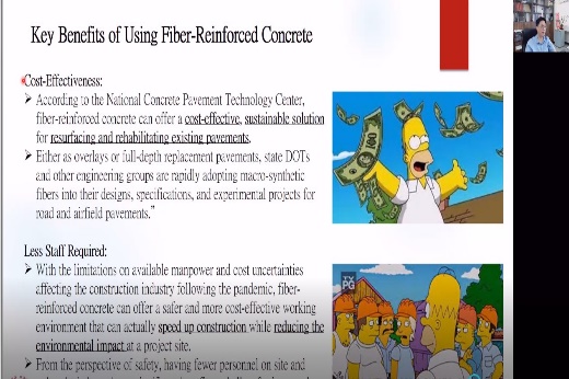 为了方便参会同学的理解,洪崇展教授6月27日上午的讲座是关于纤维混凝土的基础性质的介绍。首先,洪教授由普通混凝土材料的局限性切入,混凝土的耐久性,力学性能和施工性存在一些缺点,而混凝土材料在全球建设占据大量份额,纤维混凝土这种提高混凝土的性能的方法对于行业具有重大意义。接着,洪教授介绍了对于纤维混凝土的理解,纤维混凝土类似于一个混凝土材料内部散布着很多的混凝土纤维,并介绍了纤维的体积的百分比(vf)这一重要参数。随后,洪教授通过几张图片,具体讲述了纤维混凝土的效用及其对于混凝土的受弯性能的影响。紧接着,洪教授介绍了混凝土中纤维的各种典型材料,比如碳纤维、钢纤维等,以及各种材料的不同形状形式。然后,洪教授结合实验操作,介绍了纤维混凝土基础力学性能中的抗压性能、抗拉性能、抗弯强度和抗剪强度。最后,洪教授结合具体的工程案例,说明了纤维混凝土巨大的经济价值和应用前景。讲座内容结束后的答疑环节,洪教授就同学关于纤维混凝土的受力性能的疑问进行了详细的回答,更加细致的讲述了抗拉抗剪的性能和纤维混凝土的纤维强度、纤维体积百分比等参数之间关系,让同学有了更深的理解。