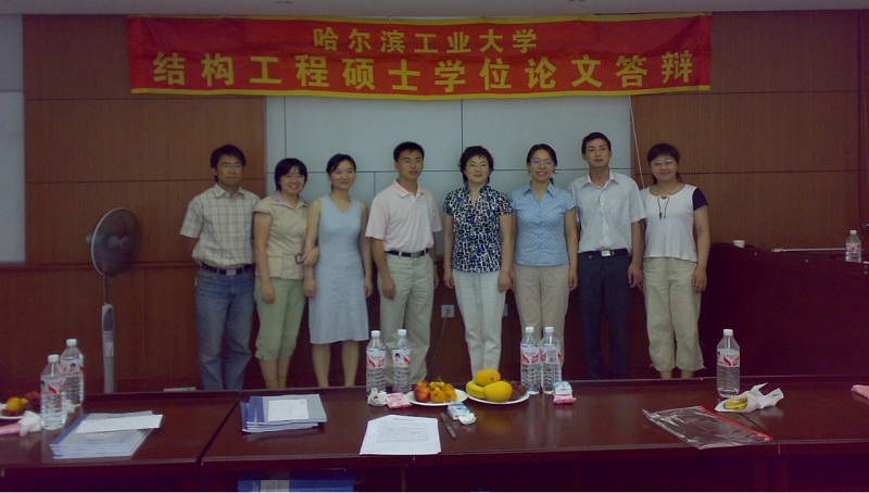 2007年7月,张素梅教授(左五,项目第4完成人)、王玉银教授共同指导的硕士研究生学位论文答辩(左一刘昌永,左二耿悦)